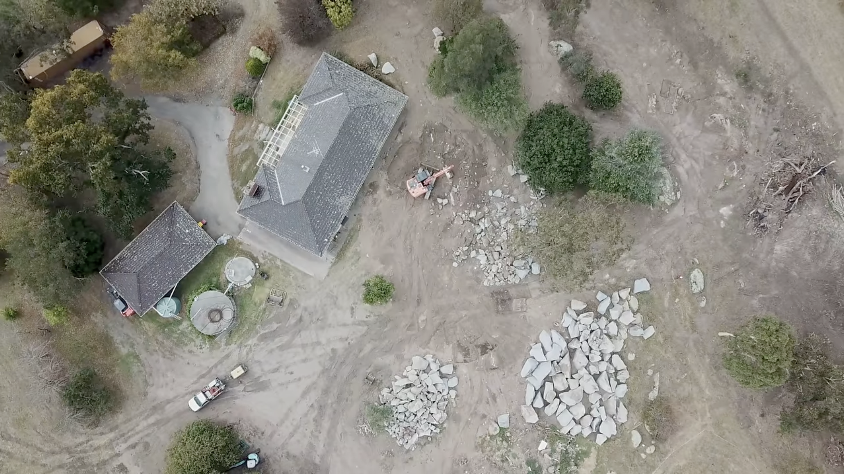 Somebody built a house beside it, and then presumably somebody else decided that they didn't want a rock next to their house, so they demolished the rock instead of the house.