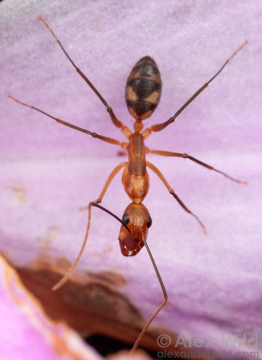 The distinctively-patterned Caribbean Banded Carpenter Ant, Camponotus zonatus. Panama.
