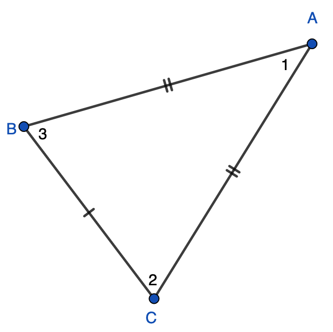 Which angles are equal?To me this is an "easy" question even if you don't know about isosceles triangles or anything. The symmetry of the figure suggests that 3 and 2 are congruent.