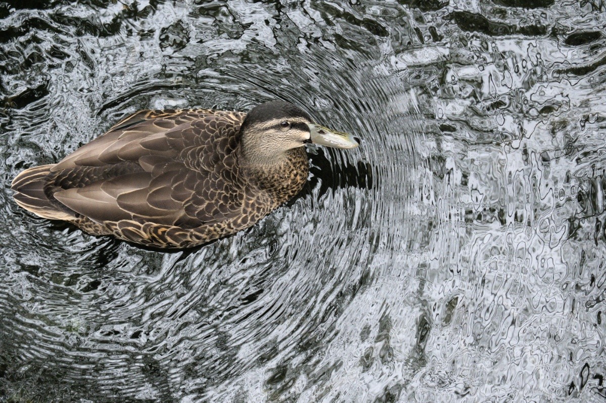 A mallard duck swimming on the Heathcote River with the *best* reflections (I took a lot more photos of the swirling patterns on the silver water): https://inaturalist.nz/observations/335927802