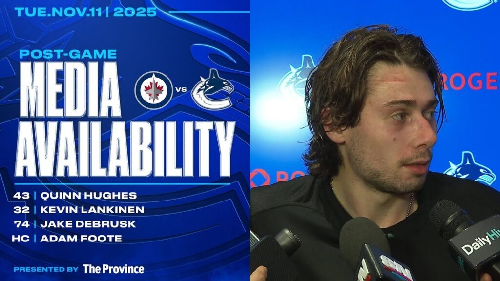 https://www.lovenhl.com/1464766/ Hughes, Lankinen, DeBrusk & Adam Foote Post-Game Media | Canucks vs.